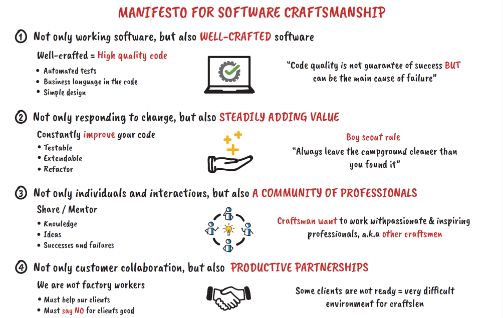 Some key principles of software craftsmanship include: